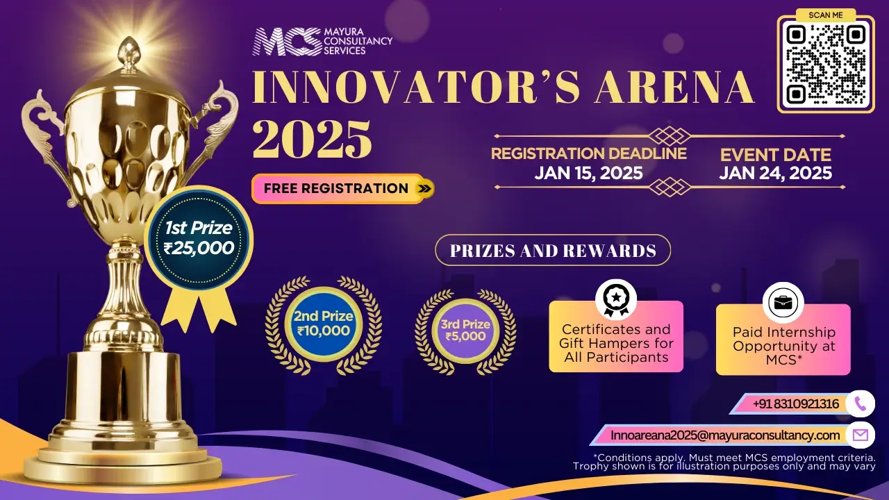 For more details and registration, Visit: www.mayuraconsultancy.com/mcs-innovators-arena-2025